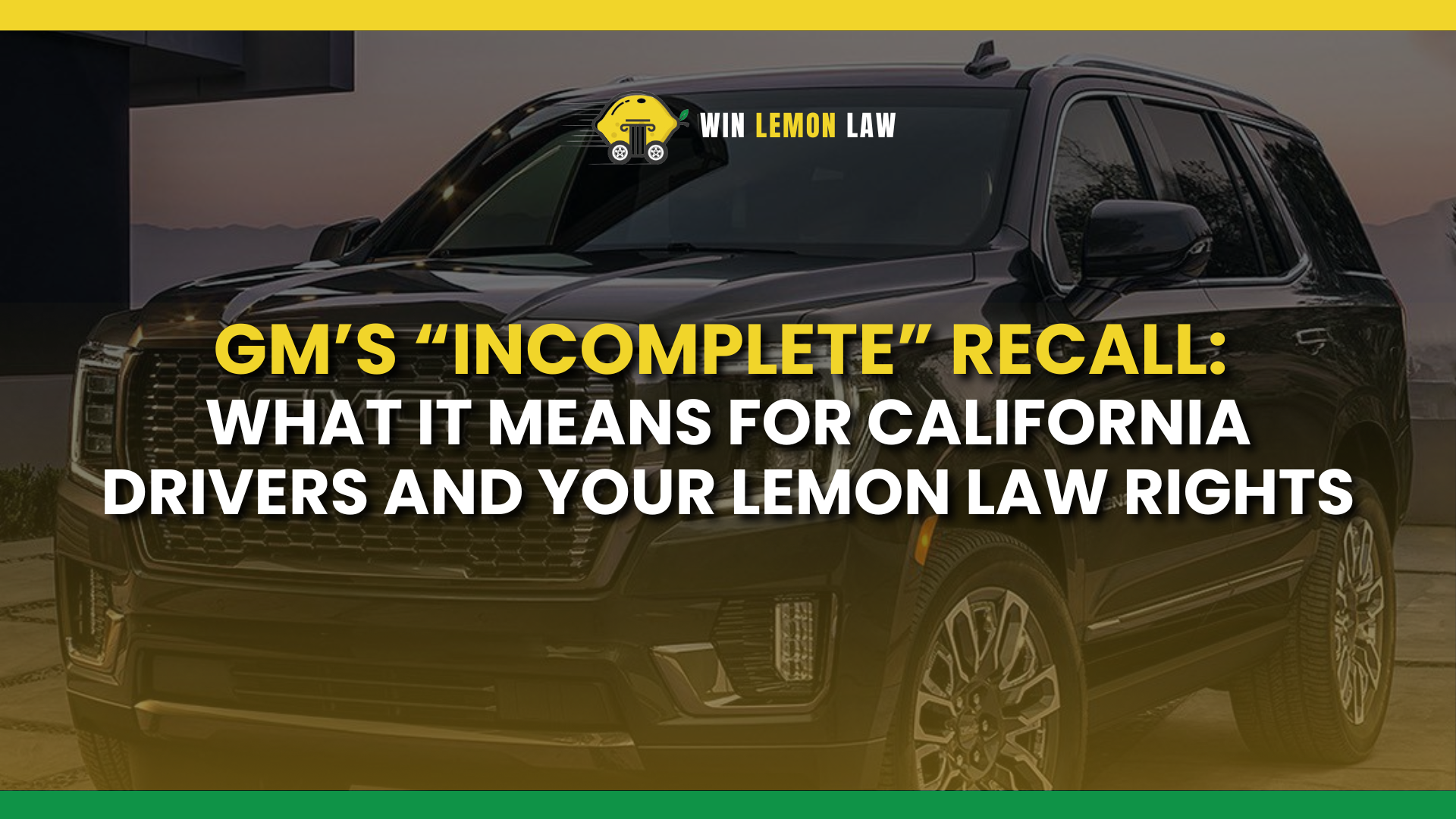 GM’s “Incomplete” Recall: What It Means for California Drivers and Your Lemon Law Rights